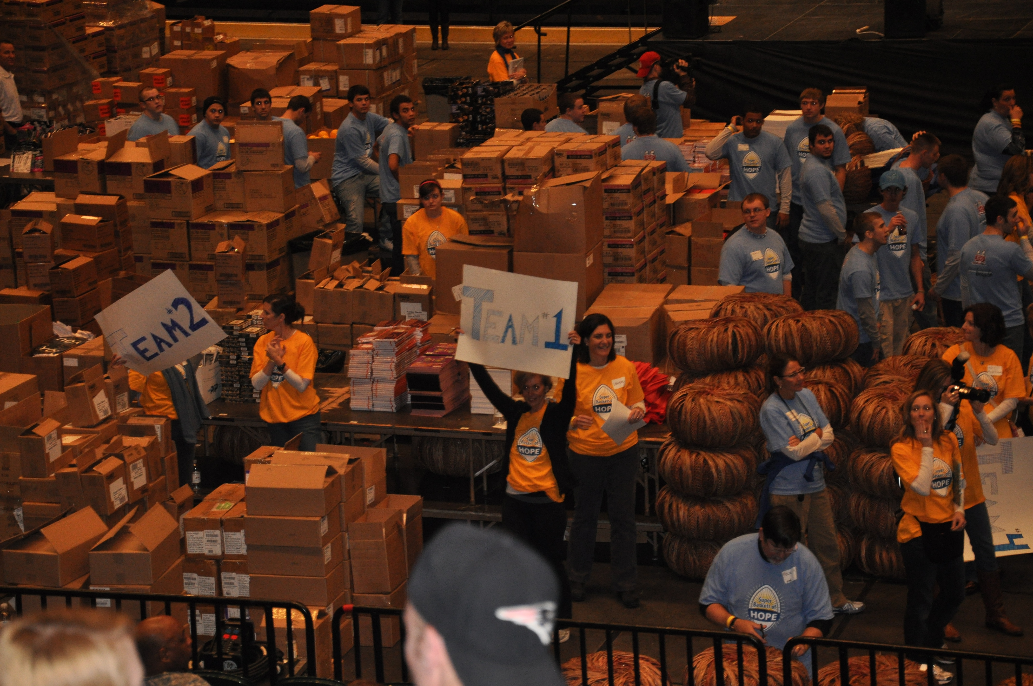 As I wrote about in my previous post (A Full Circle…Woven in a Basket of Hope) our worlds collided yesterday, January 30th, 2012. Over 900 volunteers gathered in Super Bowl host city, Indianapolis, to assemble 7,000 baskets to be delivered to critically ill children across the nation. All 32 NFL cities will be receiving a share of baskets this week before the Giants and Patriots kick off on Sunday night. These baskets, and accompanying Hope Tote Bags for parents, will be delivered by each city’s local athletes and celebrities to kids in their own children’s hospital.