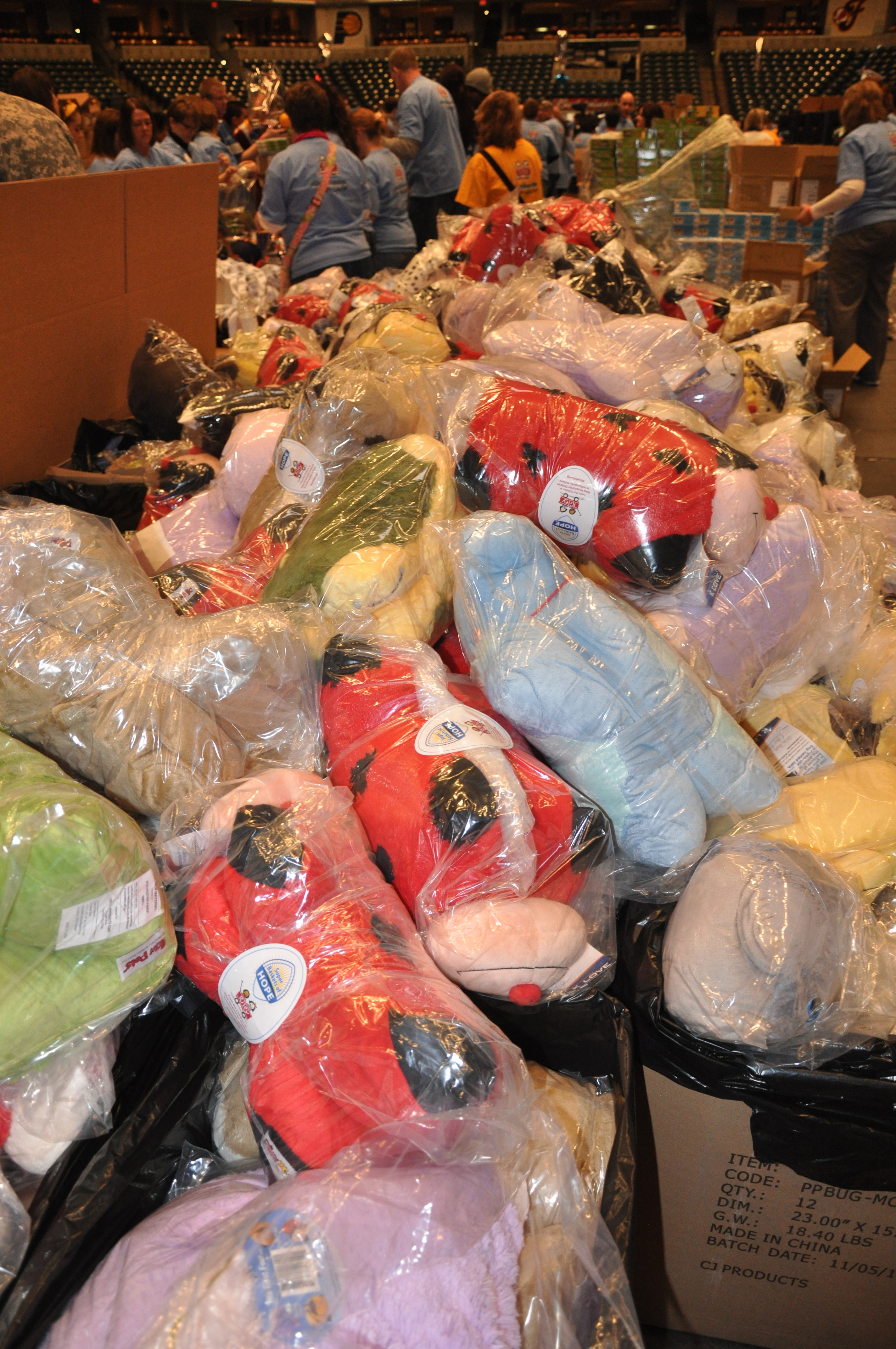 As we stood on the assembly floor at Banker’s Life Fieldhouse we were not only surrounded by mounds of toys, books and goodies to be stuffed into baskets, but by friends from several spheres of our life who were working amidst the rows of tables. It really had come full circle and seeing it with my own eyes felt surreal, and wonderful!