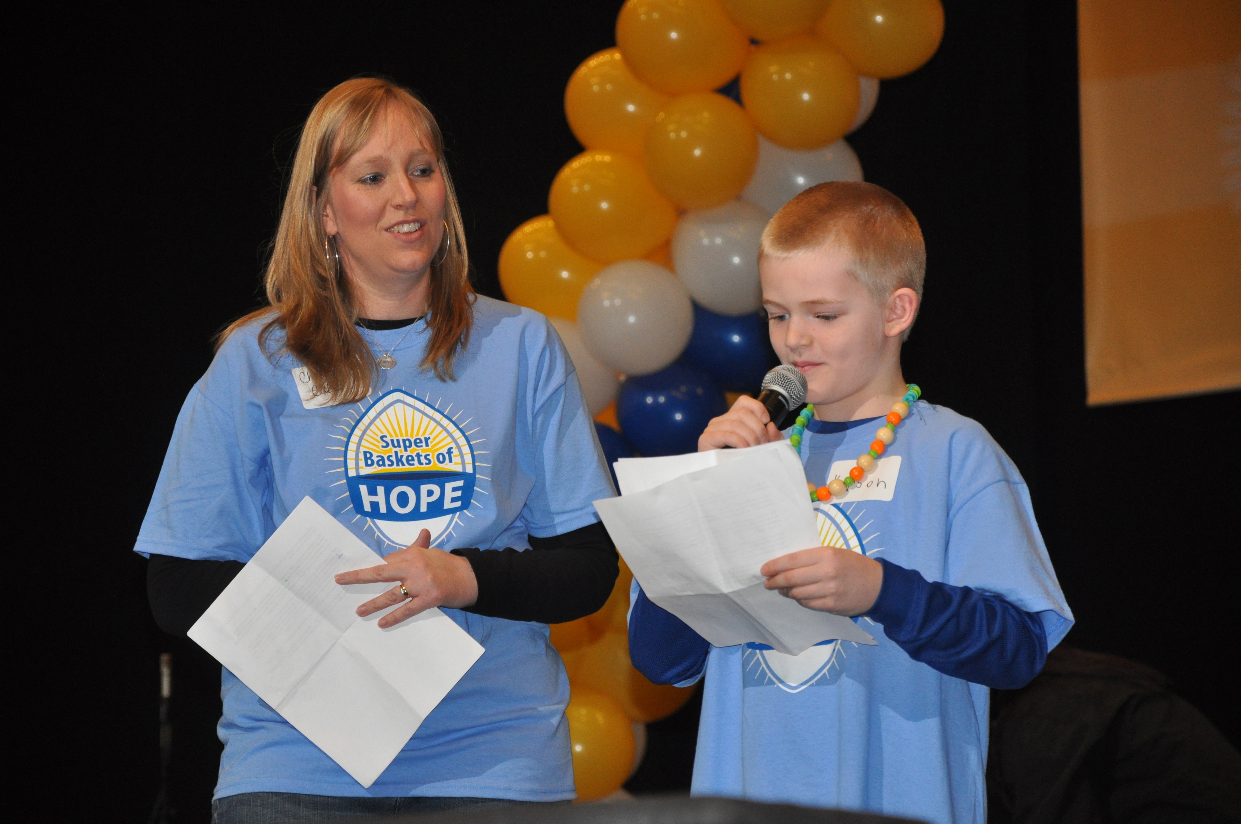 Kraig, Karson and I were given the opportunity to stand on the platform at 10am and to share our Basket of Hope story. Hundreds of people listened as our seven-year-old cancer survivor took a turn at the microphone. Karson did a great job and we are so proud of him for being brave enough to share in such a venue.