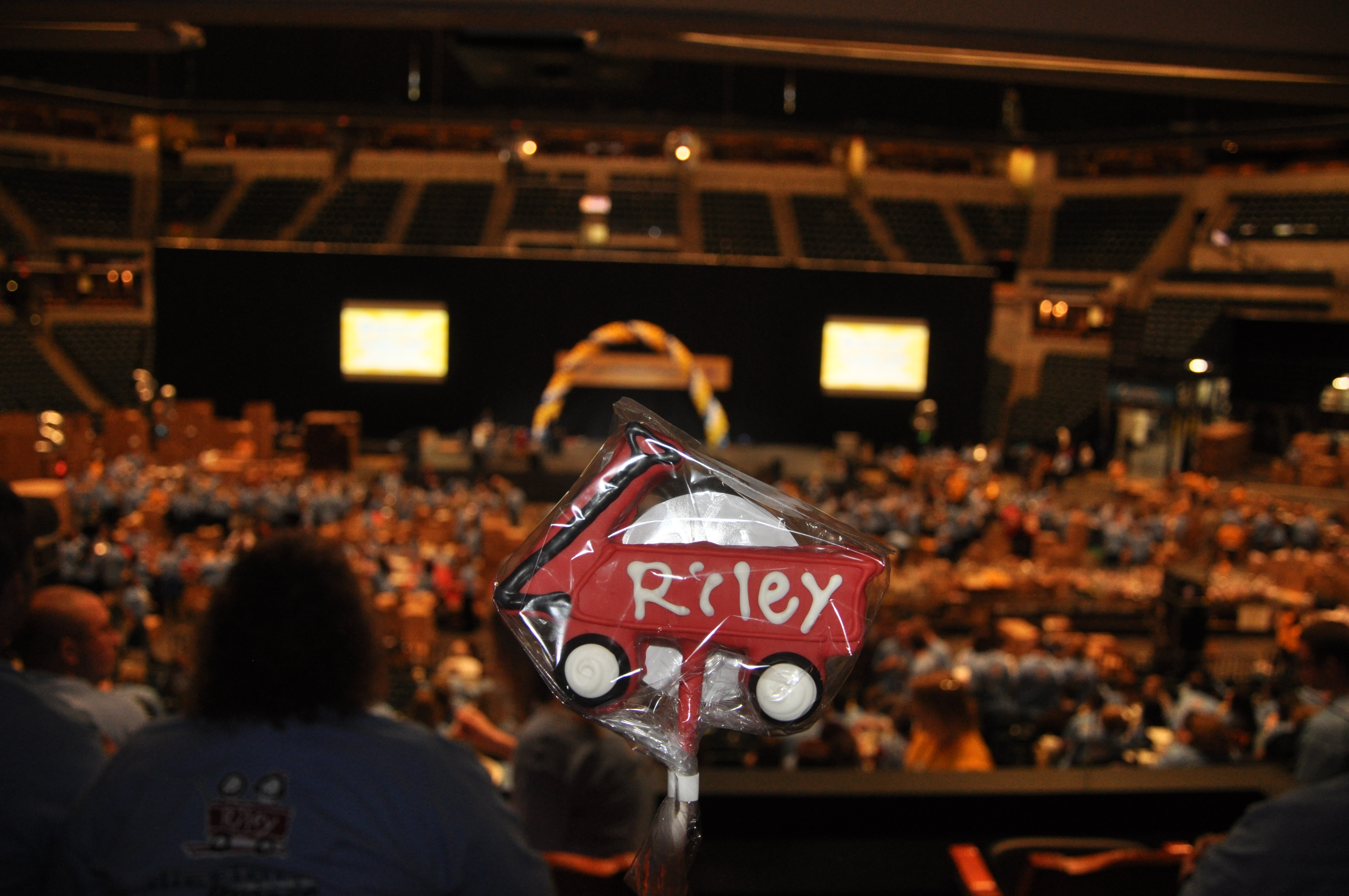 We also saw friends who serve on the Riley Foundation Team and who have done an incredible amount of work over the last year to make yesterday a reality. Most of them had arrived at Banker’s Life before 3 am and they were still going strong at 3 pm! They are a dedicated group of people who truly care for children. I can attest that the Riley staff are always thinking of ways to care for and love children. For example, the Riley Family Suite where Karson and I spent a lot of time yesterday was filled with crafts for the children to do, toys for them to take home and at lunch they offered peanut butter and jelly sandwiches (with the crusts cut off!) as well as macaroni and hot dogs. There were even Rice Krispy treats in the shape of a Riley wagon. The kids come first! It seems Riley staff thought of everything and they didn’t just think of it, they made it happen. We are blessed to know these Riley Foundation Staff members and look forward to continuing our service on the NE Indiana Foundation Team. Thank you Riley Foundation for the amazing vision and all of the “elbow grease” that made yesterday come true.