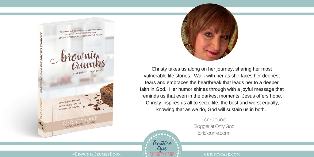 My friend Christy shares her story of love, loss and the lessons learned along the way. “brownie crumbs and other life morsels” Available TODAY on AMAZON! You will laugh and cry, but mostly find HOPE as you walk with her on her journey.