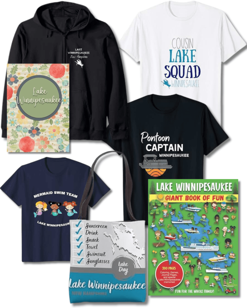 Browse Lake Winnipesaukee t-shirts, hoodies, tote bags, and more featuring designs inspired by time on the water, scenic mountain views, and relaxing days at the lake.