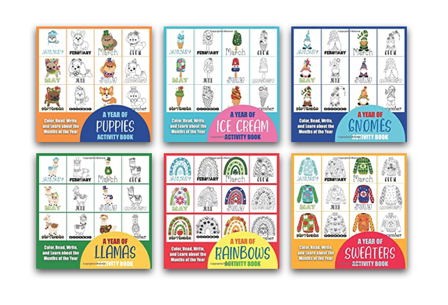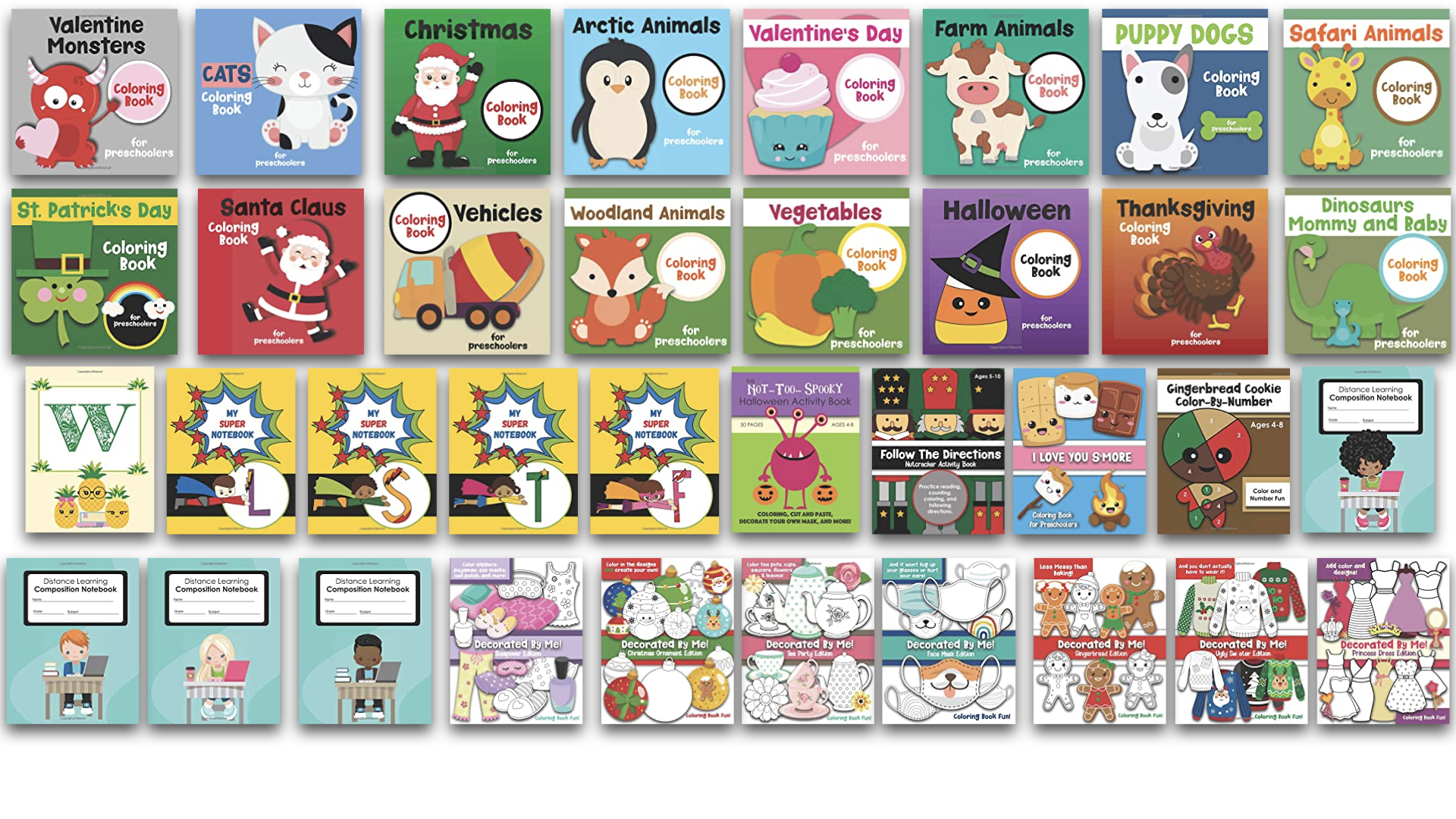 These books in the Maggie and Grace Creative Collection range from Square Coloring Books for Preschoolers, to Monogrammed Notebooks, to Holiday Activity Books, to Distance Learning Composition Notebooks, and more! Check them out here: